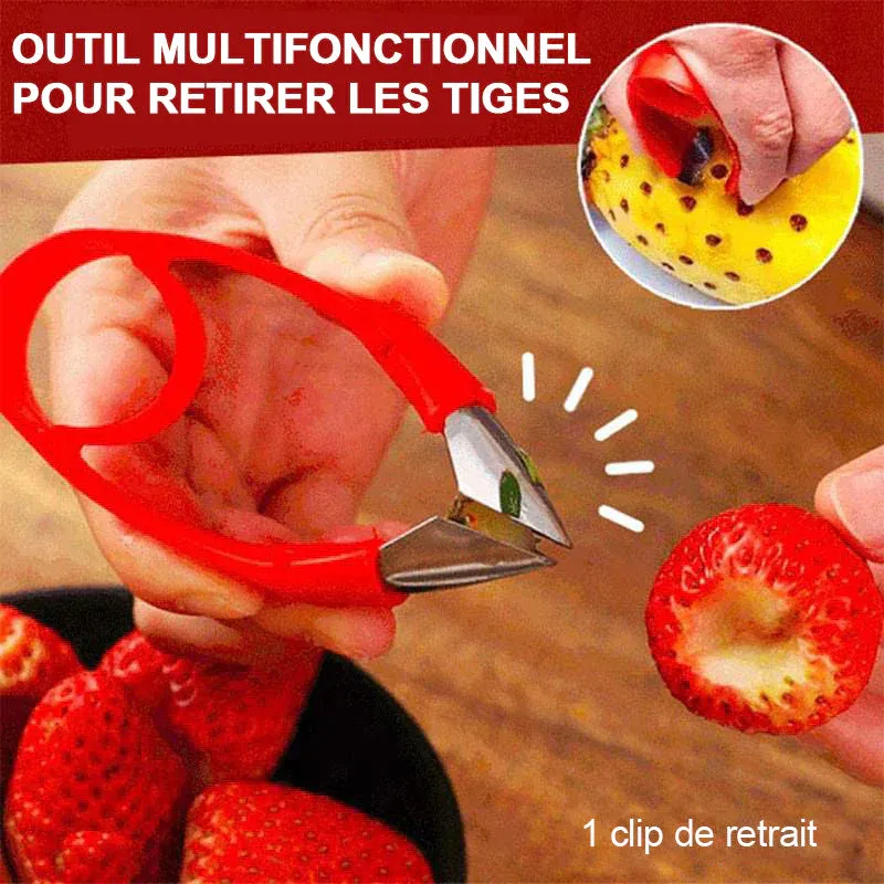 Cet outil multifonctionnel vous permet de préparer facilement des aliments. Il est idéal pour enlever les tiges de fraises, il réduit les efforts et le temps passés à couper et retirer les fruits et légumes.