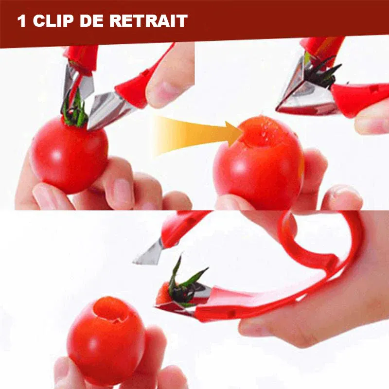 Facile à utiliser, une seule pince permet d’enlever les tiges des fruits et légumes et de rendre la peau propre. -