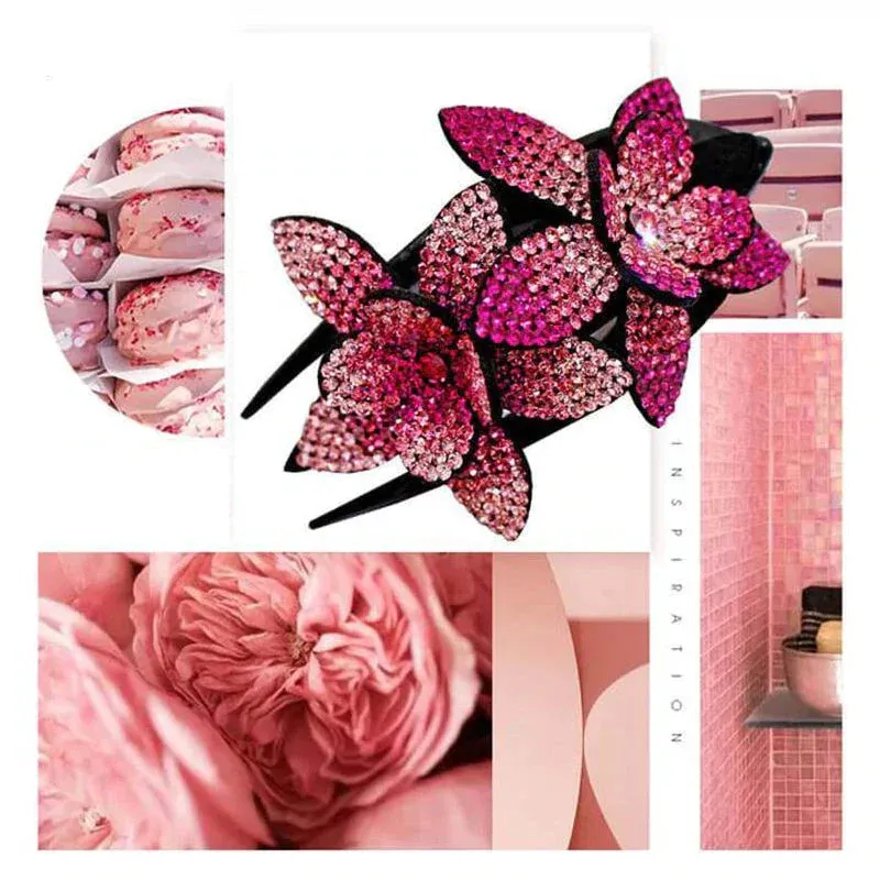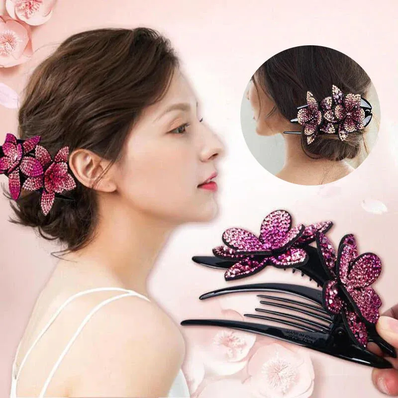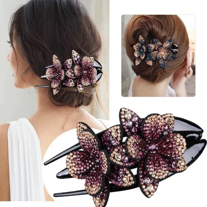✨✨ Épingle à cheveux double fleur strass
