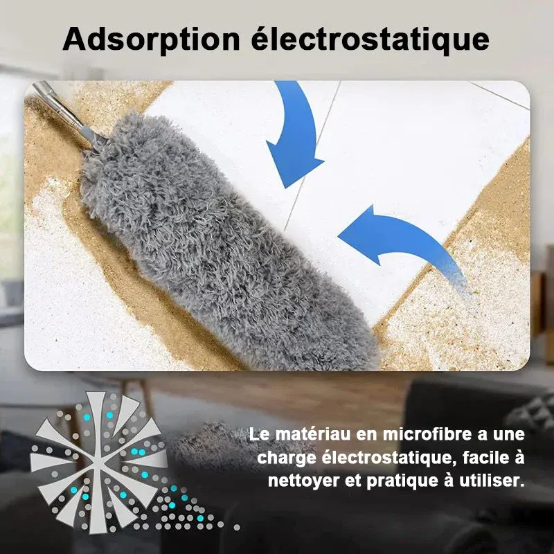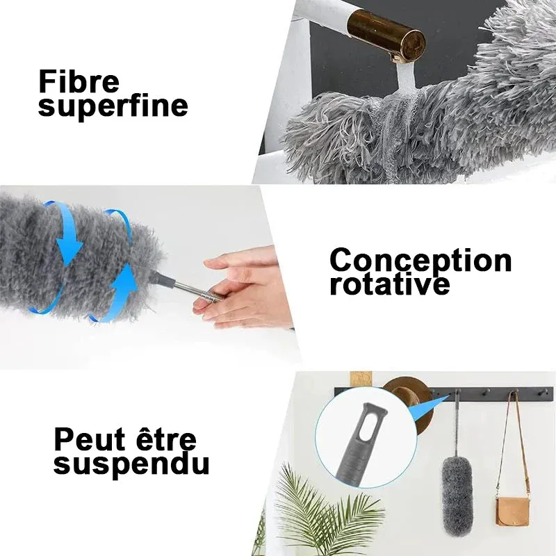 Ce plumeau en microfibre incurvé rétractable et lavable est fait d’un matériau en microfibre de haute qualité, la tige est en acier inoxydable, qui ne rouille pas et a une longue durée de vie.