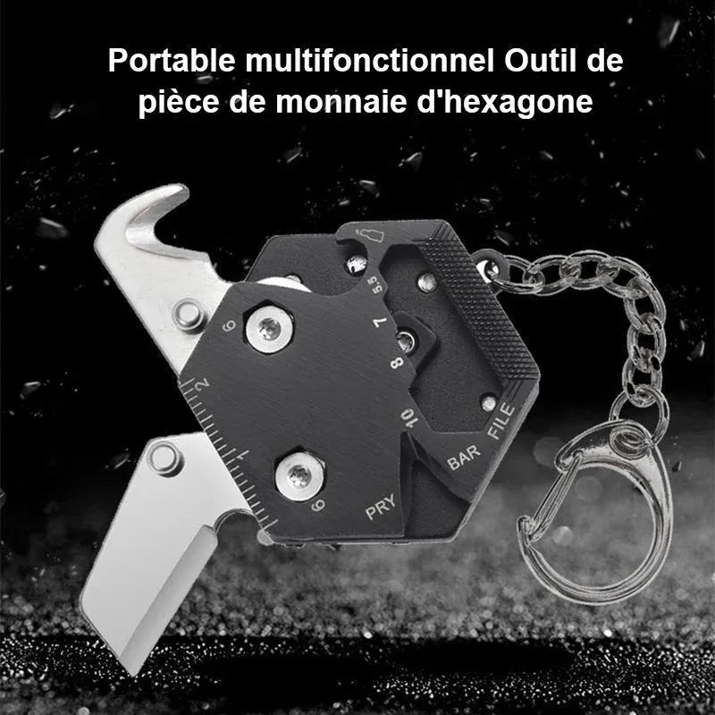 1*Porte-clés multifonctionnel d’outil de pièce de monnaie d’hexagone portatif