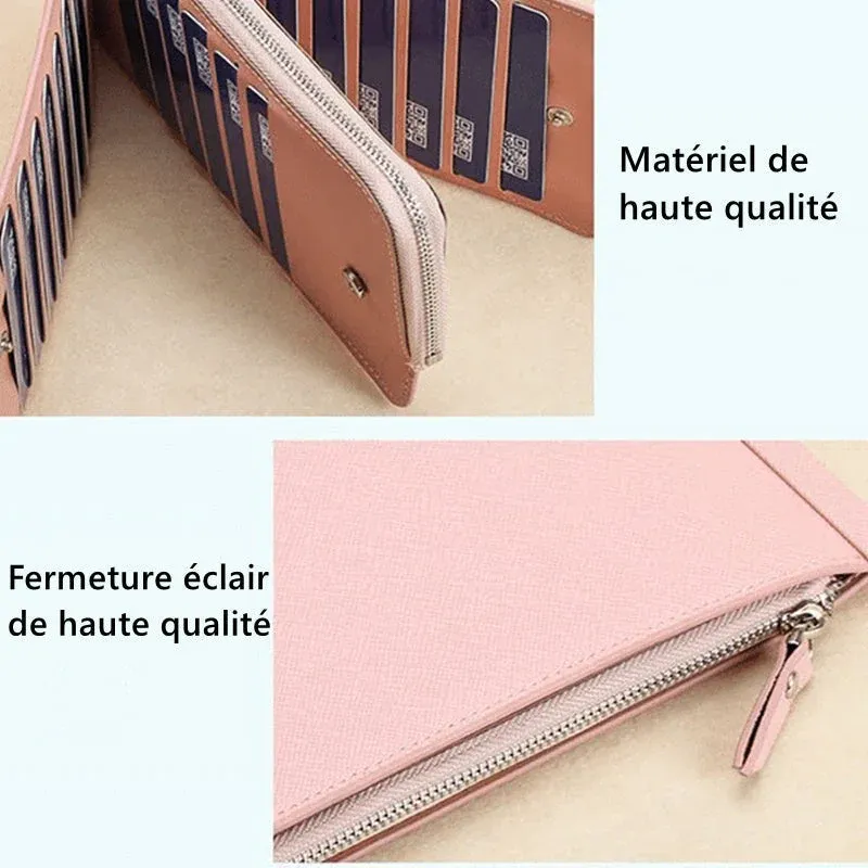 26 porte-cartes et une poche zippée pour ranger votre téléphone et votre argent. Le portefeuille multifonctionnel peut contenir toutes les cartes dont vous avez besoin pour voyager, faire du shopping, photographier dans la rue, faire la fête.