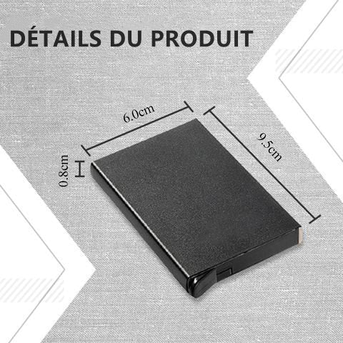 Il s’agit d’un portefeuille de blocage RFID minimaliste. La capacité parfaite de 11 emplacements pour cartes vous permet de transporter n’importe quelle carte que vous voulez. Protégez vos informations personnelles avec notre technologie de blocage RFID. Retirez vos cartes en un seul clic, mais évitez également qu’elles ne tombent. Fabriqué en aluminium de haute qualité pour éviter que la carte ne se plie. C’est du minimalisme, pas de limites. Il s’agit de transporter moins mais d’avoir toujours ce dont vous avez besoin.