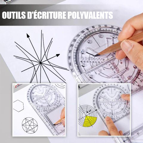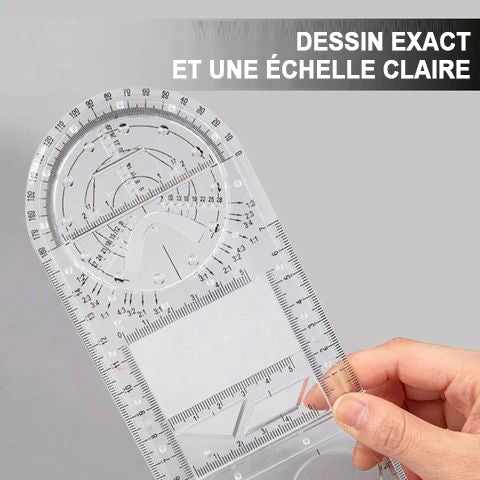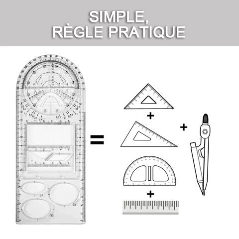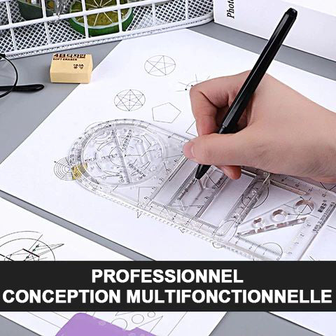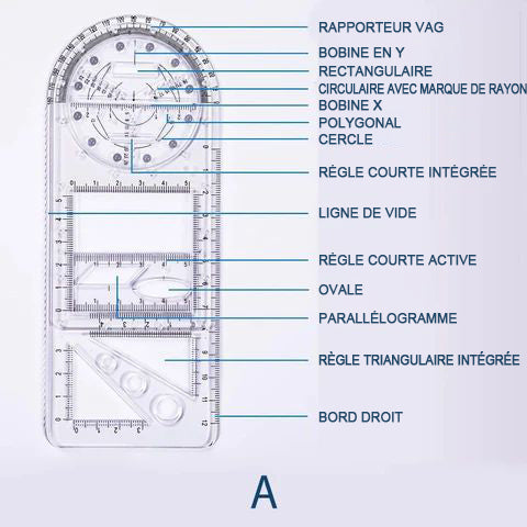 Une règle sur laquelle sont placées diverses formes de figures géométriques. Il est très pratique à transporter, peut répondre à vos différents besoins au quotidien et est pratique pour la mesure.