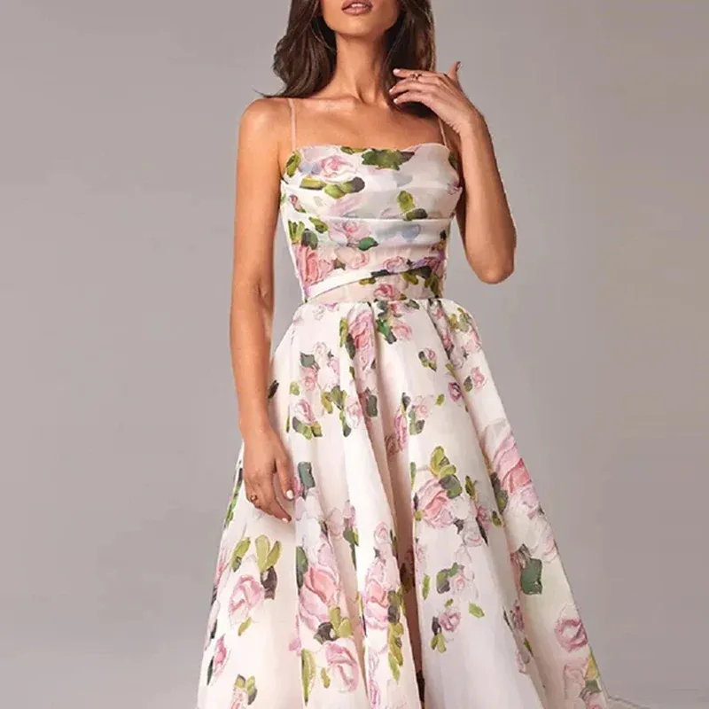 Élégance avec un top tube et sans manches. Elle flatte votre silhouette lorsque vous portez cette robe plissée à taille élastique. Sexy dos nu, jolie robe imprimée.