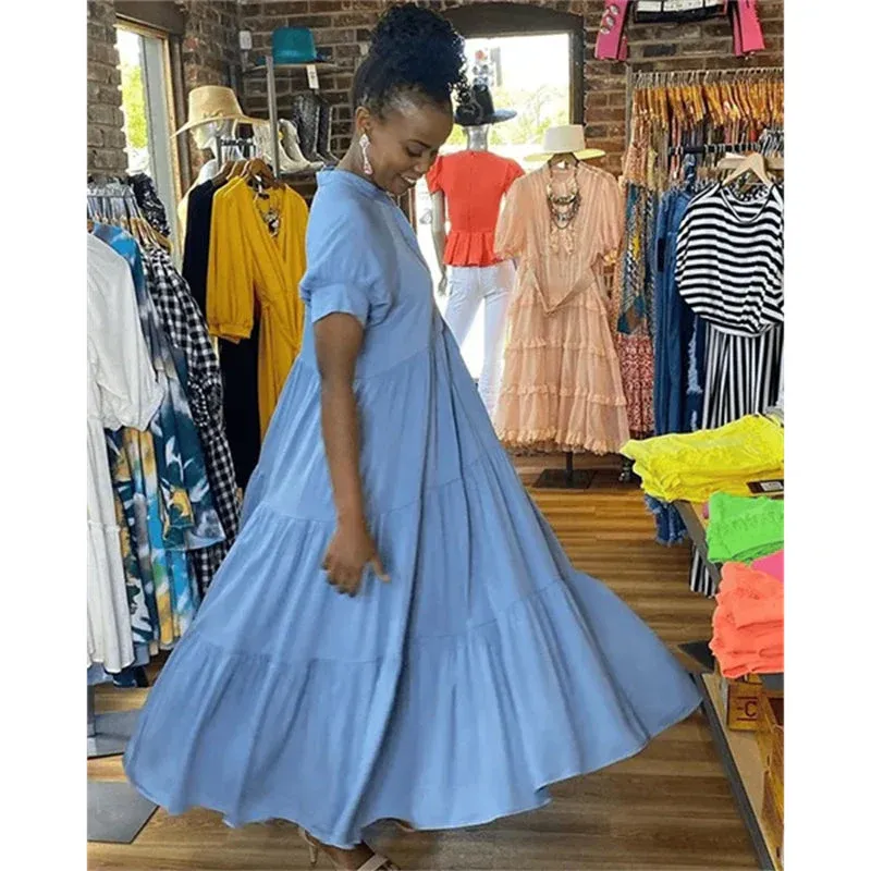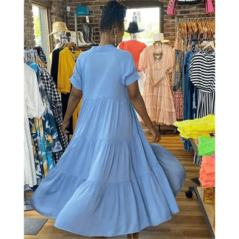 Robe mi-longue à manches courtes, style chic et élégant. Parfaite pour casual, quotidien, plage, vacances, cocktail, soirée, mariage et etc.
