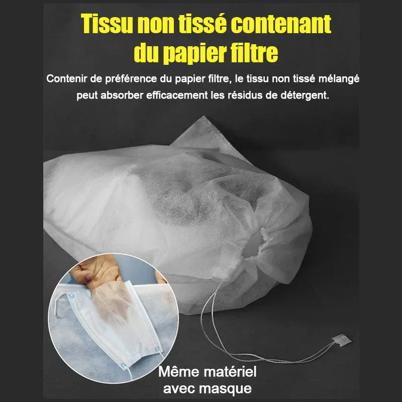 Recyclable. Il absorbe efficacement les substances résiduelles des détergents et est pratique pour le lavage à froid et empêche les chaussures de jaunir.