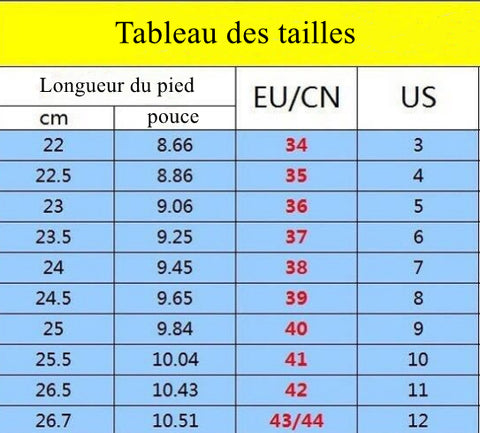 - Pointure: 35, 36, 37, 38, 39, 40, 41, 42, 43
