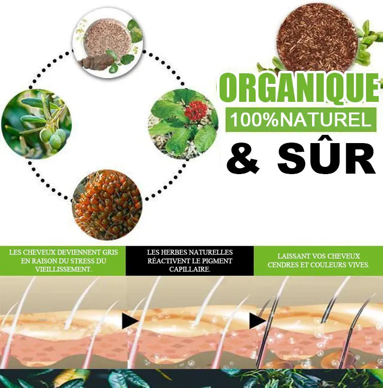 Ce savon shampoing redonne instantanément à vos cheveux leur couleur naturelle, du gris à une couleur foncée éclatante. Cela vous redonne confiance en vous faisant paraître et vous sentir plus jeune.