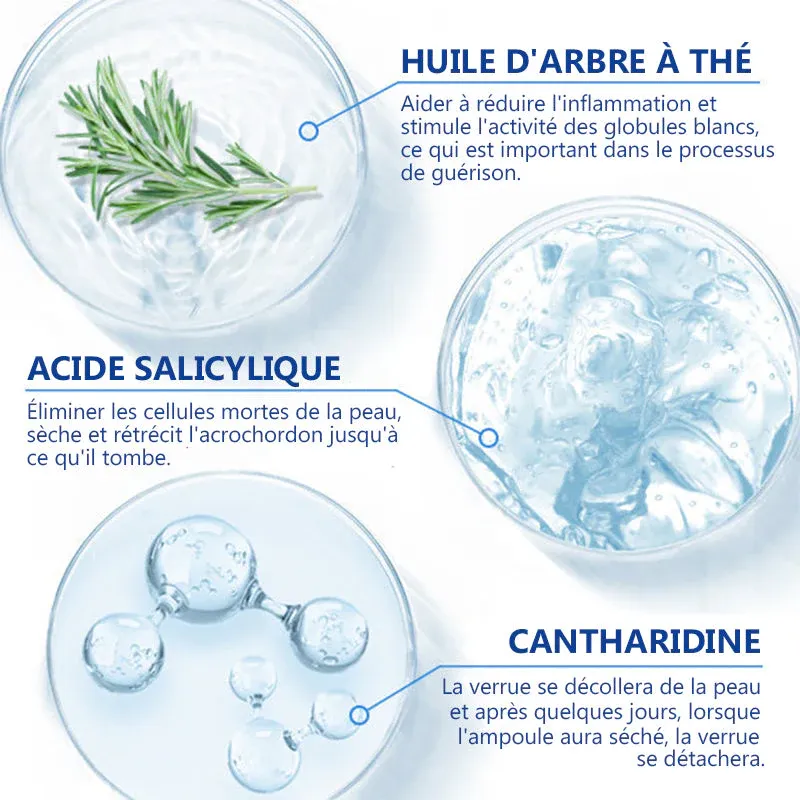 - Formule révolutionnaire, ce sérum élimine efficacement et rapidement verrues et acrochordons en seulement 14 jours. Ce sérum puissant combine des ingrédients cliniquement prouvés avec une technologie de pointe pour des résultats supérieurs.