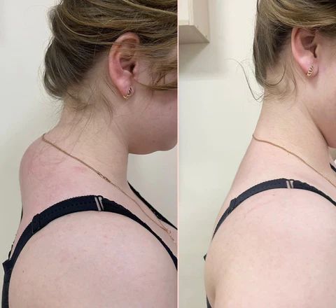Avant, j’avais un bossu sur la nuque et ça avait l’air terrible. Cela a causé un gonflement et une douleur constants dans mon cou. J’ai essayé de voir un chiropraticien, des analgésiques, des relaxants musculaires, des étirements, de l’exercice, une thérapie par la chaleur/le froid, des appuis sur les mains, des oreillers, etc. Il y a des choses qui soulagent temporairement le stress, mais à la fin rien n’y fait.