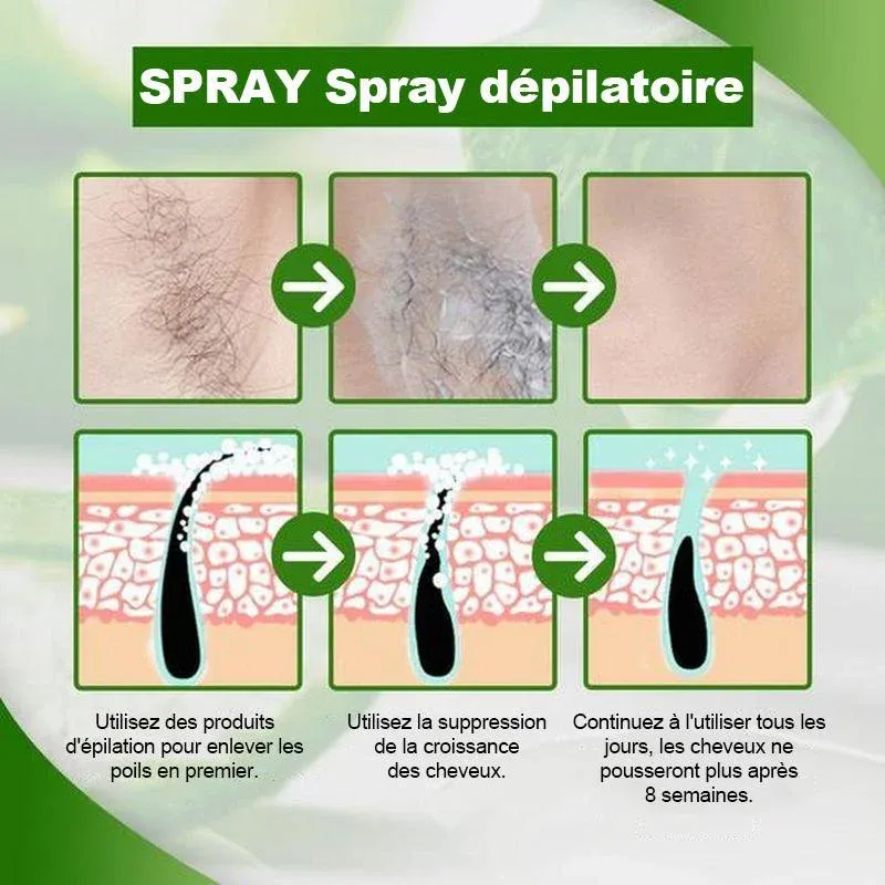• Facile à utiliser – Vaporisez-le simplement sur la partie du corps où vous souhaitez éliminer les poils tenaces, attendez 8 à 10 minutes, puis essuyez-le. Vous pouvez partir maintenant!