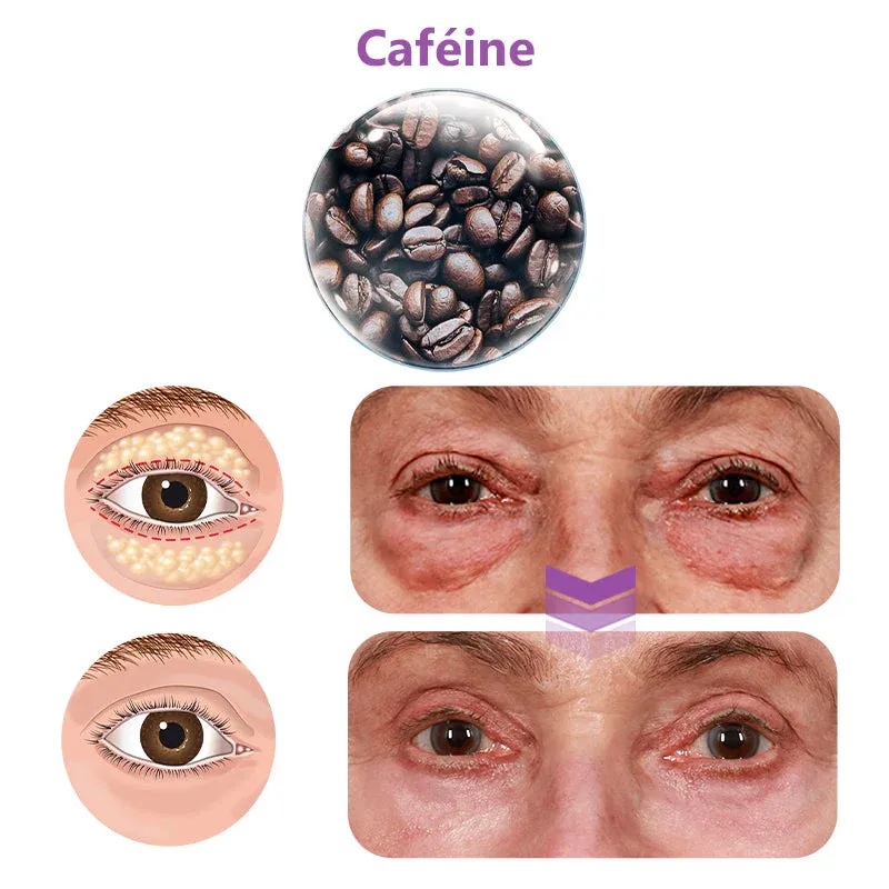 - La caféine augmente non seulement votre vigilance, mais rajeunit également la peau autour de vos yeux. Selon le Dr Lorna, LD, dermatologue certifiée par le conseil d’administration de l’hôpital Mount Sinai, la caféine agit comme un vasoconstricteur, qui resserre les vaisseaux sanguins, réduisant l’affaissement et les poches autour des yeux pour une apparence plus serrée, plus jeune. La recherche montre également que la caféine peut neutraliser les radicaux libres causés par les dommages à l’ADN et possède des propriétés anti-inflammatoires, qui peuvent toutes deux aider à améliorer la structure des yeux et à réduire l’affaissement.