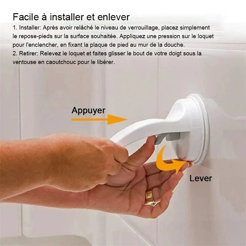 Améliorer la sécurité de la salle de bain avec ce repose-pieds de douche à ventouse.