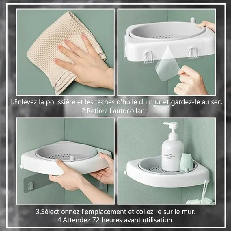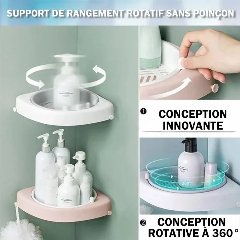 Ce support de stockage rotatif sans poinçonnage est le support de stockage idéal pour les salles de bains, les cuisines, les chambres, les salons et les salles de stockage.