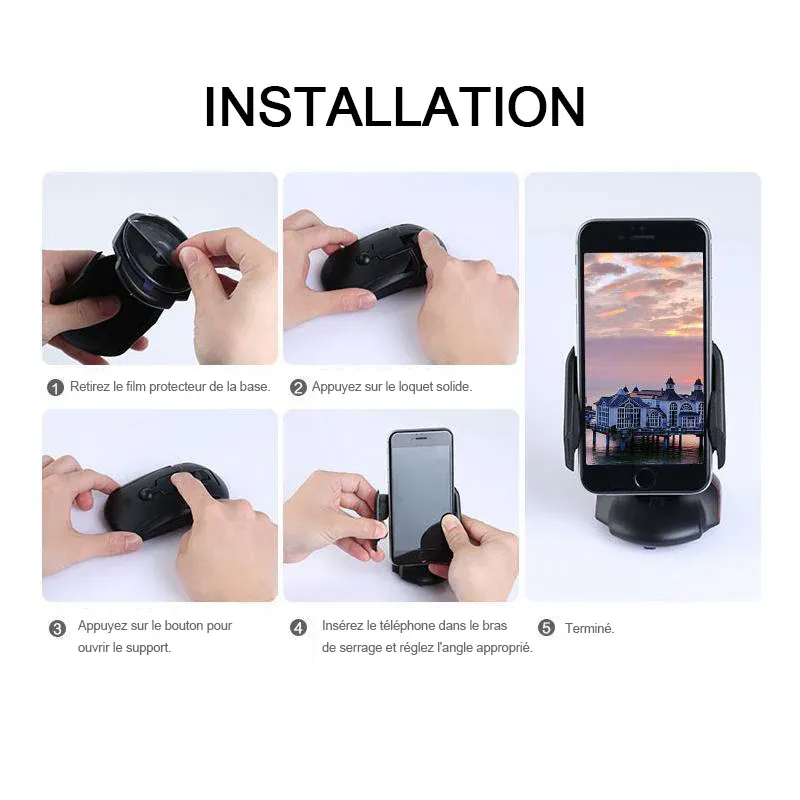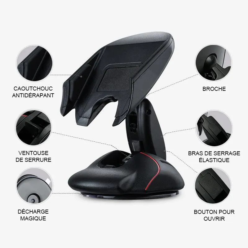 Convient pour la plupart des smartphones compatibles tels que Apple iPhone 5/6 Plus, Samsung, Android, MP3 et GPS. Système d’assemblage simple en un clic. Parfait pour les tableaux de bord, les bureaux ou les pare-brise pivotants à 360 degrés.