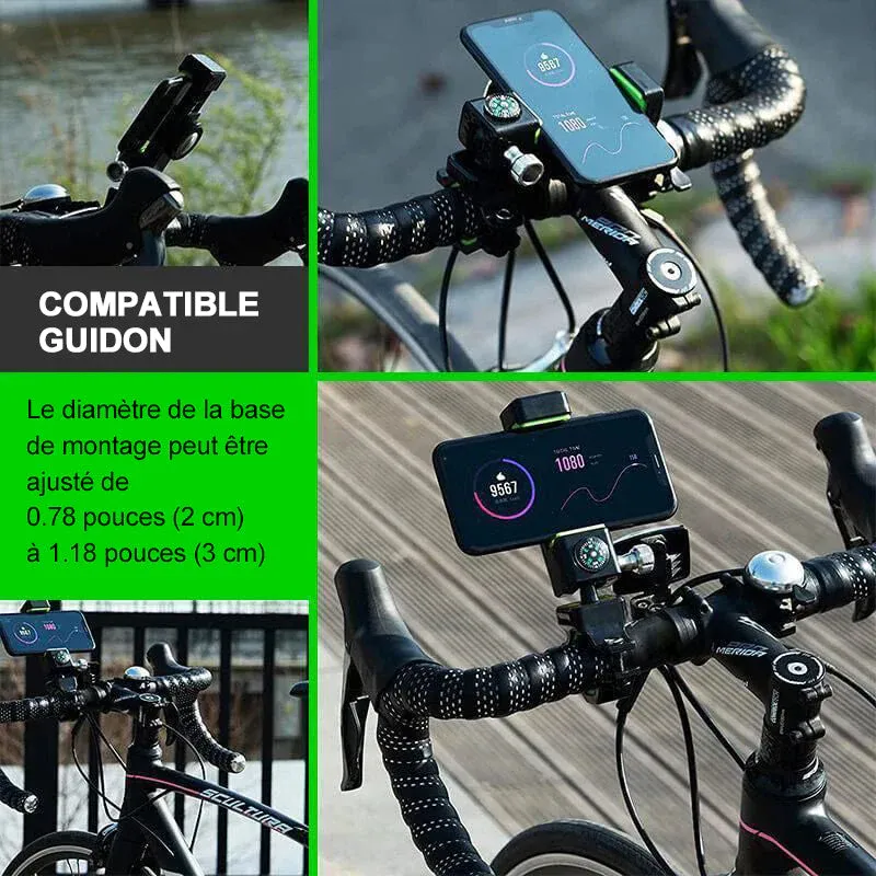 Ce support de téléphone pour vélo de montagne/route amélioré se monte facilement sur le guidon de votre vélo sans outils. Convient à tous les types de vélos, motos, poussettes, caddies, scooters électriques, tapis roulants d’intérieur, vélos d’intérieur. ❗ Convient au diamètre du guidon : ⌀ 0,59 – 1,57″ (15-40 mm).