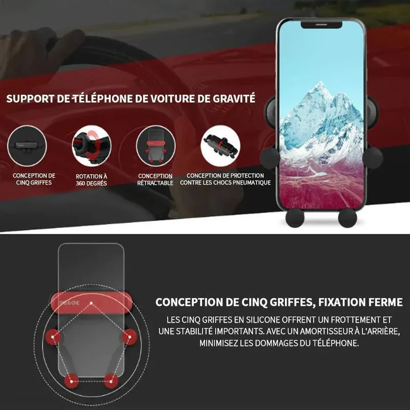 • SOLIDE & SÛR: La griffe à cinq pointes procure un frottement et une stabilité importants, assurant la fixation ferme du téléphone portable. Il minimise le tremblement du téléphone avec un amortisseur à l’arrière;