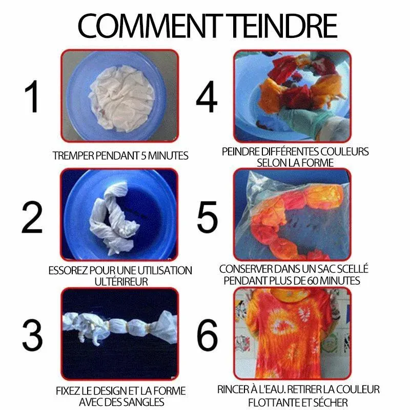 - Laissez libre cours à votre imagination et à votre créativité. Avec ces teintures, vous pouvez commencer à teindre tous les tissus et vêtements de votre choix. Utilisez simplement votre imagination et votre créativité pour teindre des vêtements charmants et étonnants.