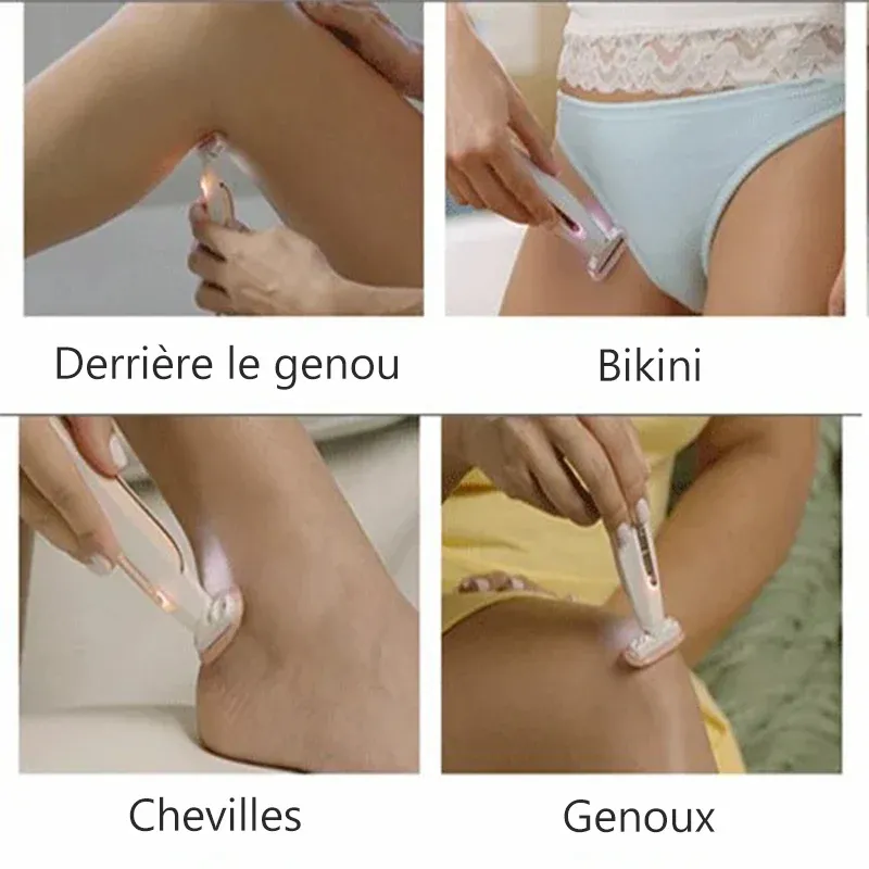 Idéal pour épiler les jambes, les bras, les aisselles, le maillot, le dos, les chevilles, etc. - Peut être chargé via la lumière LED intégrée.