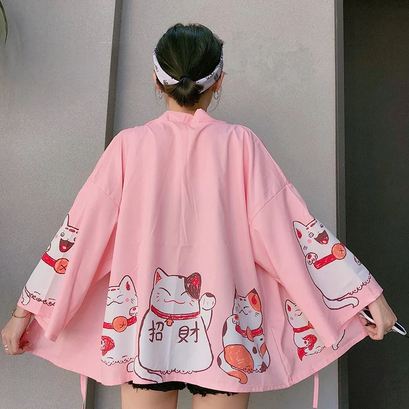 Une ceinture ruban est offerte avec la veste kimono.