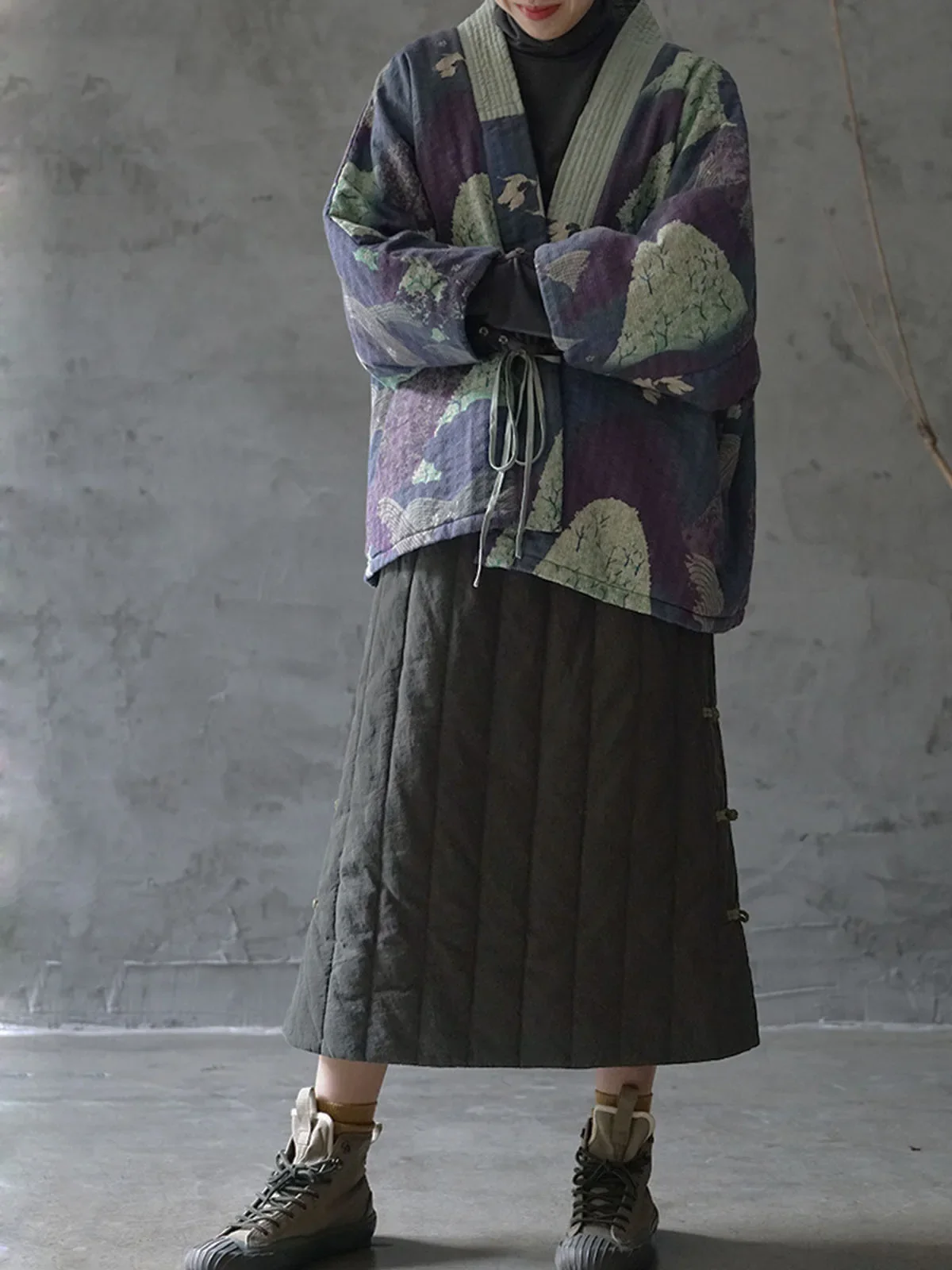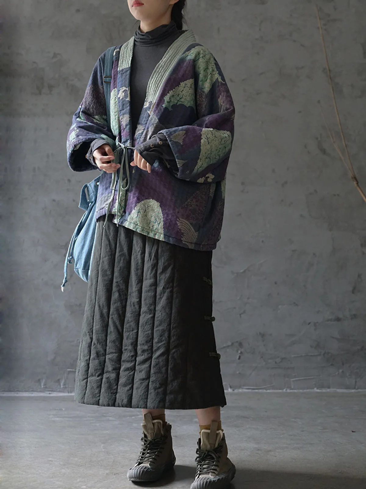 Cette Veste Kimono Matelassée pour Femme offre une coupe raffinée et un rembourrage léger, alliant chaleur, confort et élégance pour un look stylé même par temps frais.