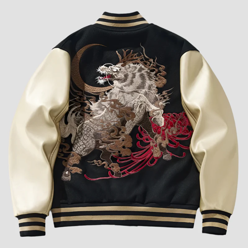 Inspiré du style Sukajan traditionnel japonais, célèbre pour ses motifs riches et sa finition en satin